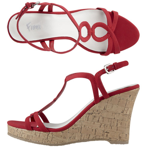 | Fioni Red Strappy Sandal Wedges, $26.99 - Payless |
